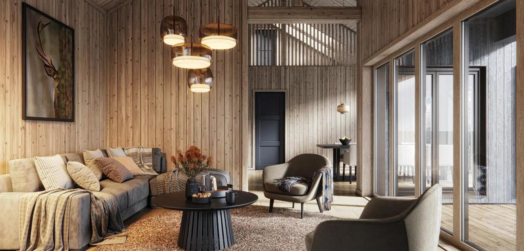 Veggli er en romslig og solid familiehytte som sømløst kan tilpasses ulike typer terreng, enten det er i fjellet eller i skogkledde områder. Veggli gir rikelig med plass til trivelige øyeblikk med venner og familie, samtidig som den gir deg nærhet til naturen med store vindusflater og enkel tilgang til utendørsområdene.